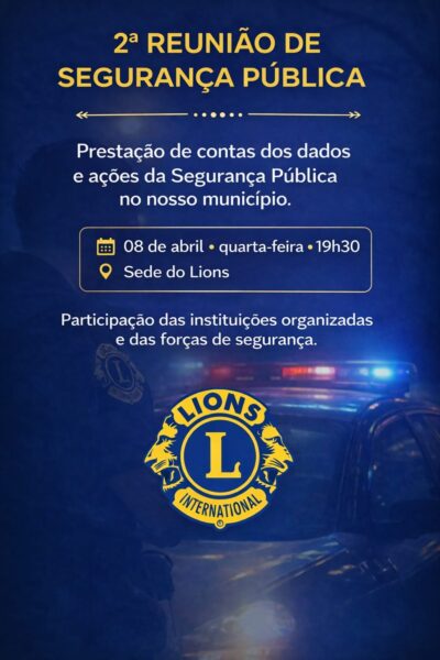2ª Reunião de Segurança Pública dia 08/04 no Lions de Guaçuí-ES 2 de abril de 2026 Guaçuí & Região Fonte: Lions Club Guaçuí ContasLionsMunicípioParticipaçãoPrestaçãoPúblicaReuniãoSedeSegurança