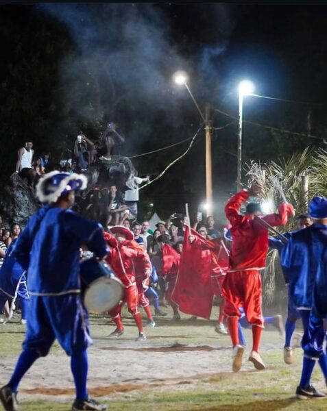 O Ticumbi é uma manifestação cultural afro-brasileira única no Brasil, uma dança dramática de origem africana que celebra a fé em São Benedito, com forte tradição quilombola no norte do Espírito Santo, encenando uma “guerra” entre Reis (Bamba e Congo) para louvar o santo, com instrumentos como pandeiros e viola, representando resistência e ancestralidade.