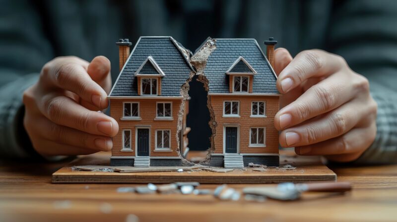 hands-hold-model-house-split-two-divorce-broken-pieces-represent-property-