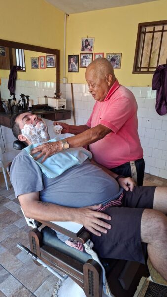 O barbeiro que nunca fecha: Budé trabalha há mais de sete décadas sem folga e se tornou um personagem marcante na história de Conceição da Barra