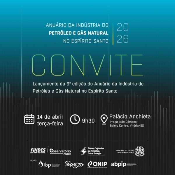 A Federação das Indústrias do Espírito Santo (FINDES) e o OBSERVATÓRIO FINDES lançam, no dia 14 de abril (terça-feira), às 9h30, a 9ª edição do Anuário da Indústria do Petróleo e Gás Natural no Espírito Santo. O evento acontece no Palácio Anchieta, em Vitória.