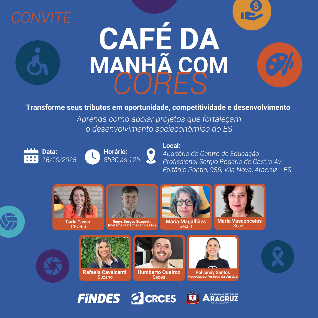 Inscrições: https://findes.online/cafecomcoresaracruz