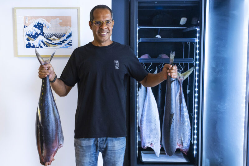 Um dos principais diferenciais da casa é o uso da técnica de maturação de pescados. O processo, utilizado em restaurantes de alta gastronomia, permite controlar temperatura e umidade para desenvolver sabor, textura e concentração de umami no peixe, intensificando suas características naturais.